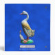 A painted, carved wooden duck with her duckling, heavily weathered, on a blue background. There are two places for you to customize this product by adding your own text on the front, and another on the spine.
