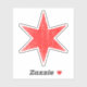 Sticker featuring a weathered, worn, red, six pointed Chicago flag star.