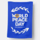 Celebrate the International Day of Peace (aka World Peace Day) on September 21 with this house flag, which shows a bright orange peace sign standing in for the letter O in world, encircled by laurel leaves on a calming blue background. Reverse shows identical design.