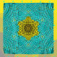 This funky mandala features blue and yellow in a basket weave style. Psychedelic visuals for the modern hippie or anyone who loves groovy colors.
