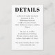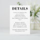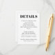 A refined wedding details card designed to match a modern minimalist invitation suite. This insert provides your guests with essential wedding information such as hotel accommodations, travel plans, and booking instructions. The bold serif “DETAILS” heading and clean typography create a timeless, elegant look that complements any wedding style - city, classic, romantic, or destination. Customize all text to suit your event: include lodging options, transportation notes, ceremony directions, or wedding website links.