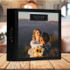 A minimalist stylish wedding album featuring a large photo on a black background with modern typography. The perfect binder to collect memories of your special day!