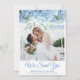 Blue periwinkle hydrangeas watercolor floral wedding announcement card. Customize names, dates, and information.