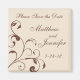 Send this save the date reminder magnet along with your wedding announcement to help your friends remember your wedding day. This wedding reminder magnet features brown swirls and curls on a cream background. You can easily customize the text from the product order page.