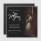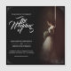 Wedding announcement with the image of a dreamy bride leaning against a wall with a bouquet of white flowers in the penumbra - classic style.