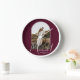 A special keepsake features your wedding photo in an elegant arch design with the text "Married" in chic text along with your names and wedding date on a burgundy background wall clock. Beautiful gift for your family and a fabulous memory to display in your own home. BACKGROUND color can be changed! MORE COLORS in our collection.