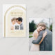 This elegant wedding response card features a place for your QR code so that guests can easily rsvp on your wedding website. The front features a beautiful faux gold arch with a square photo and a modern design. The back is one full photo for your engagement photo or other favorite picture.