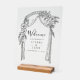 Make a statement on your big day with this beautifully crafted transparent wedding arbour welcome sign. Featuring elegant calligraphy and a charming arbour design, this sign is the perfect way to welcome your guests to your wedding day or reception. With its eye catching design, this sign will complement any wedding style or theme. Hang it at the entrance of your wedding venue or display it on an easel for an added touch of sophistication. Your guests will love the warm welcome they receive as they arrive to celebrate your special day.