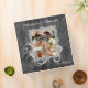 Custom Personalized Wedding Photo Album or Binder. Great for use as a family album, wedding scrapbook, document folder or any use. Add your photo and custom text. Elegant black and charcoal argyle background with silver gray swirl frame design.