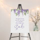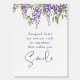 Wedding Assigned Seats Not Our Style Sit Anywhere Ceremony Sign features elegant watercolor purple wisteria flowers on a white background with the text "Assigned seats are not our style sit anywhere that makes you smile" in elegant purple handwritten calligraphy script typography. Perfect for the entrance to your wedding ceremony. Designed for you by ©Evco Studio www.zazzle.com/store/evcostudio