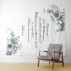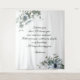 Wedding backdrop with customizable verse and blue native floral decoration.