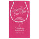 Hot pink and white lace Happily Ever After personalized wedding bag. Use it as a gift bag for your bridesmaids or as a wedding welcome bag or a gift bag at a bridal shower. The bride and groom's name can be personalized. Pink and white works for a spring wedding, summer wedding, or winter wedding. The subtle lace pattern adds elegance to the bag.