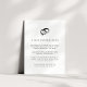 Charming black and white wedding guest information card features a vintage style illustration of a wedding band and diamond ring at the top. Replace the sample text with the key details of your wedding celebration.