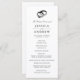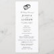 Our chic black and white wedding program features your ceremony details in elegant lettering, accented with a hand drawn style illustration of an entwined wedding band and diamond engagement ring. Reverse side lists the members of your wedding party with easily editable text fields, topped by a tiny bouquet illustration. Use the template fields to add your ceremony and bridal party information, and then click "Customize" to reposition elements if needed.