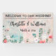 Wedding Banner Watercolor Wildflowers designed in pastel shades of pink and teal green, with text: WELCOME TO OUR WEDDING, The Bride and Groom's First Names and Wedding Date. To personalize, simply insert your details into our easy template, replacing the sample text. Be sure to view the complete Wedding Watercolor Wildflowers for matching cards and accessories.