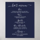 Wedding Bar Personalized Navy Blue Drink Menu Poster