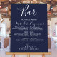 Wedding Bar Signature Drinks Menu Custom Navy Blue Foam Board