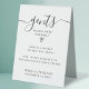 Enhance your restroom experience with our sleek and stylish wedding bathroom tent sign. Designed to seamlessly blend into any modern wedding celebration. The customizable text style, colors, and sizes allow you to personalize it to your preferences and match your wedding decor flawlessly.