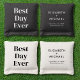 Fun cornhole bag set for your wedding reception, parties and newlywed life. "Best Day Ever" is written in a large letters on one side of the bag and your first names and wedding date are written on the other side in minimal modern typography.