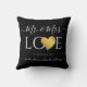 Personalized Wedding keepsake black pillow with white Script Gold Heart Name Mr. and Mrs. wedding Pillow