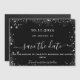 A modern and elegant Save the Date magnet for a wedding. A black background decorated with faux silver glitter. sparkles. Personalize and add a date and names. The text: Save the Date is written with a large trendy hand lettered style script.