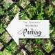 A chic white background. Personalize and your family name. Black letters. With the text: Parking