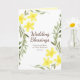 Wedding blessings greeting card featuring a scripture from the Bible book of John 15:12 and decorated with bright yellow blossoms among sprays of greenery painted with watercolor. On the inside is a very light shade of yellow and text that you can edit to fit your needs.