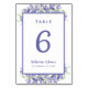 A template for any number this elegant watercolor floral Wedding Table Number design features a classic botanical garden design with stylish shades of periwinkle blue flowers with soft lush greenery on a crisp white background. Personalize wedding table design with your names, wedding date and table number in trendy lettering and script. The back of the card is a duplicate of the front. Easily customize and order one for every table with the individual table numbers.