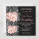 Wedding Blush Peach Charcoal Floral Black Invitation