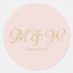 Wedding blush pink script monogram elegant custom classic round sticker