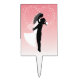 Wedding cake topper shown in a rectangle shape with a charming romantic bride and groom graphic print. Customize this item or buy as is. This cake topper is one sided. Tip; For double sided cake topper buy two, glue together and further embellish if you wish.