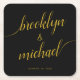 Wedding Bride & Groom Handwritten Calligraphy Square Paper Coaster