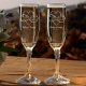 Personalize these champagne glasses with a template for the couple's first names in beautiful calligraphy, positioned below the heart and infinity symbol. The wedding date is elegantly etched below the names in matching typography, creating a harmonious and memorable keepsake.