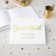 The guest book was absolutely stunning. The gold foil shines brightly and the design and printing were perfect. We can't wait until our wedding to see what people write in it!