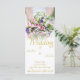 Wedding invitation - bride with colorful wedding bouquet of roses.