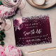 A modern and elegant Save the Date for a wedding. A deep burgundy gradient background decorated with flowers and faux silver confetti. Personalize and add a date and names. The text: Save the Date is written with a large trendy hand lettered style script.