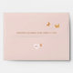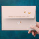 This design is of the Wedding Cake Butterflies Wedding theme that features an invitation with golden butterflies fluttering and landing on a sweet creamy wedding cake on a powder pink with a deep red accent color. Click the collection link to view all of the products in this theme.