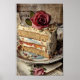 This mixed media picture showcases a delectable slice of wedding cake, with all the elegance and sophistication of a special occasion. The cake is a work of art in itself, with its perfectly smooth surface and delicate layers of sponge and cream. The slice is set against a scrapbook-style background, which adds a touch of vintage charm to the image. The background features a collage of different elements, including old photographs, handwritten notes, and delicate patterns. The overall effect is one of timeless elegance, capturing the romance and joy of a wedding day.