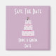 Pretty wedding cake with bride and groom on top on a lilac background "Save the Date" magnet. Edit the text to add the names of the bride and groom and the wedding date. All text is customizable – lots of different fonts and colours to choose from. A fun way to remind your guests of your wedding date. Please visit my Molly Sky store for more fun and cute wedding stuff and lots of products for everyone – even the family dog!
