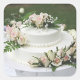 A beautifully decorated wedding cake adorned with delicate roses and greenery.