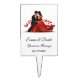 This wedding cake topper is shown with a bride and groom image, personalized names and wedding date.