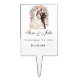 This wedding cake topper is shown with a bridal couple and floral arch print. Text of bride and grooms names, wedding date and the phrase "Together As One ". Text shown in Black.