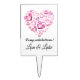This wedding cake Topper is shown in white with a pretty pink jeweled heart print with custom sample names, customize this item and change the names to yours.
