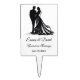 This wedding cake topper is shown with a bride and groom image, personalized names and wedding date.