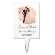 This wedding cake topper is shown with a bride and groom image, personalized names and wedding date.