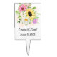 Wedding cake topper is shown in a lovely floral print with custom sample names shown in a lovely script text in a black color.