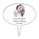 This wedding cake topper is shown with a bride and groom image, personalized names and wedding date.