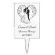 This wedding cake topper is shown with a bride and groom image, personalized names and wedding date.