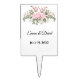 This wedding cake topper is shown with a pink roses image, personalized names and wedding date.