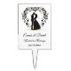 This wedding cake topper is shown with a bride and groom image, personalized names and wedding date.